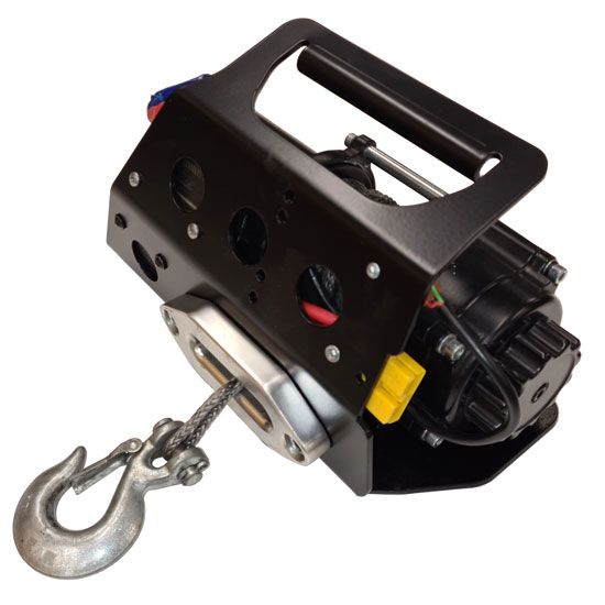 Ergonomiskt kopplingshandtag. Drev och bussningar helt i stål för högre vridmoment och längre hållbarhet. Helautomatisk 100%-ig lasthållarbroms. Tätad solenoid för skydd mot väder och vind. Handburen vädertätad fjärrkontroll med 3m kabel. Dragkapacitet på 907 kg. 15,2 m stålvajer, 4,8 mm dia. Kraftfull 4-vägs vajerstyrning.