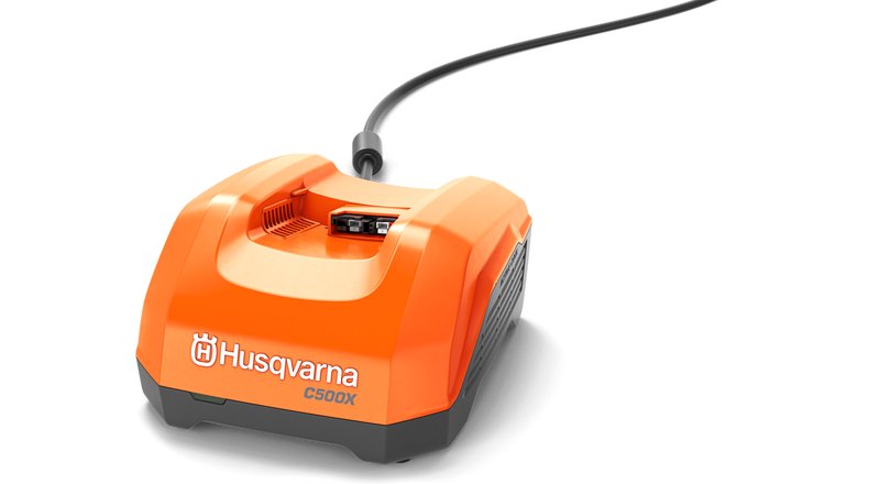 Husqvarnas laddare C500X är en effektiv snabbladdare som är optimerad för snabb laddning av batterier i det flexibla 36 V-batterisystemet Husqvarna BLi-X. C500X har en laddningseffekt på 500 W och ActiveCool, ett aktivt luftkylningssystem med integrerade fläktar, som möjliggör snabb laddning utan behov av tidskrävande avkylningsperioder. Laddaren kan antingen placeras på ett skrivbord, en hylla eller enkelt monteras på väggen med en väggmonteringsplatta som finns som tillbehör.