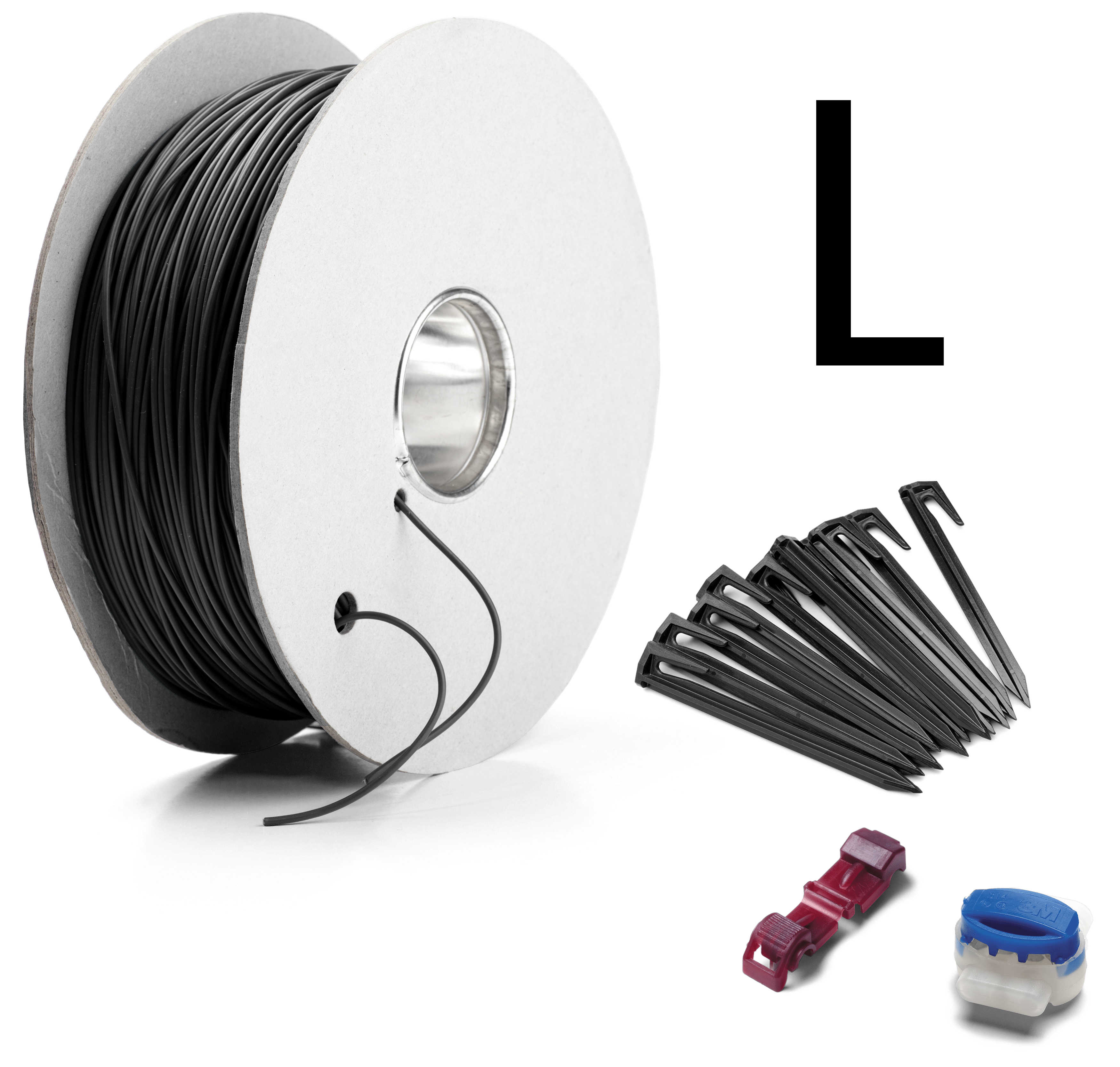 L - Innehåller 400m begränsningskabel / 600 st märlor / 5st skarvdon / 5st anslutningskontakter
