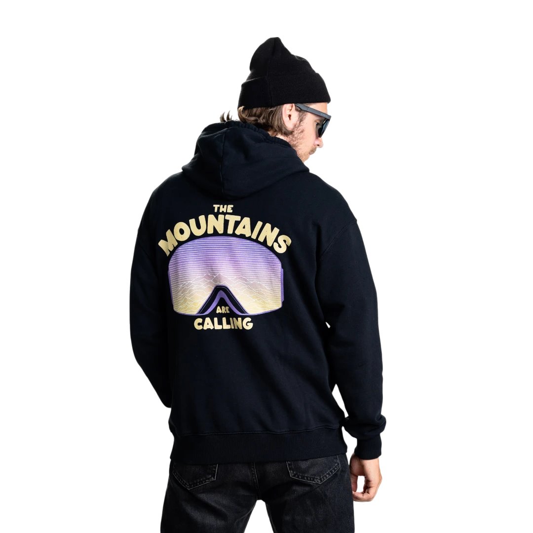 Den perfekta huvtröjan för alla som älskar äventyr och natur. Med ett unikt motiv av ett par goggles som speglar ett landskap av höga fjäll och berg, och texten “The Mountains Are Calling”, blir denna huvtröja ett måste för skoter eller alpinåkaren. Med ett stort tryck på ryggen och bröstet pryds av en stilren Jethwear-logga med en bergssilhuett.