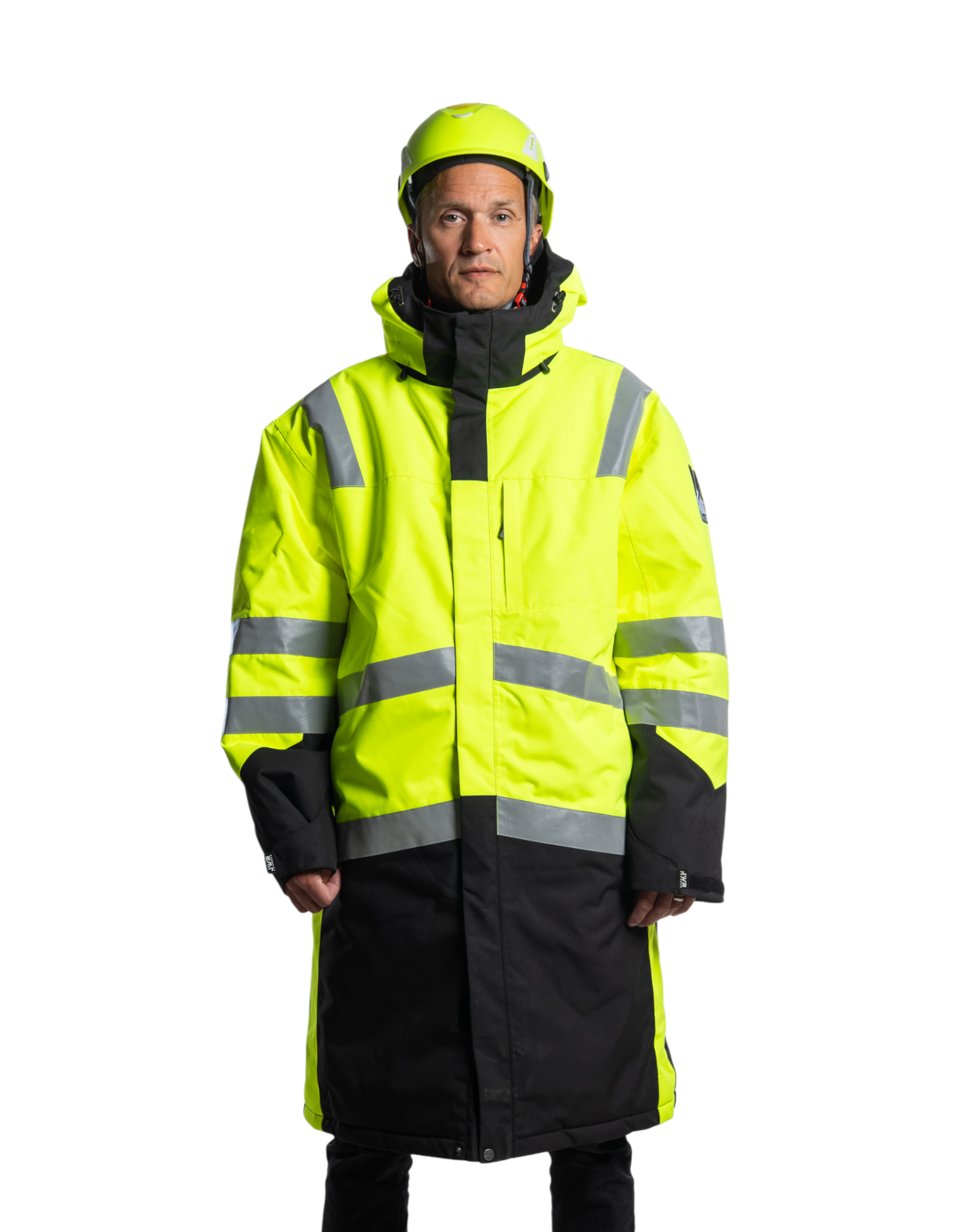 neongula färg och 50 mm breda reflexdetaljer. Den uppfyller alla hälso- och säker-